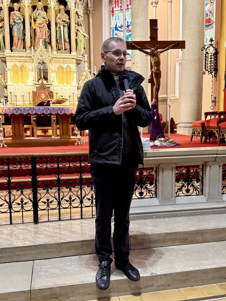 Po dolasku u konkatedralu imali smo svetu misu koju je predslavio vlč. Matej Glavica. Poslije svete mise vlč. Matej je progovorio o konkatedrali i samoj župi.